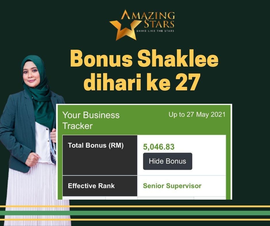 Bila uols mendaftar sebagai Shaklee Independent Distributor (SID), automatik anda akn berpeluang untuk dapat cash bonus. Tak kisah anda decide untuk menjadi ahli sekadar makan sendiri, atau nak mula berjinak berbisz, atau nak jadikan Shaklee sebagai main income. Pembelian sebanyak 150uv (point) anda sudah layak untuk terima cash bonus sebanyak 5% ni. Tapi once mami dah jadikan Insentif Shaklee Malaysia ni sebagai main income, mami trus fight untuk kejar 21% cash bonus dan bergelar Supervisor. Haaa automatik bonus akan cecah sekurangnya 4 angka. Supervisor merupakan pangkat leader yang pertama, lebih tinggi rank, lebih banyak bonus yang kita terima dan lebih banyak insentif yang akan diterima. Best ke best sangat?