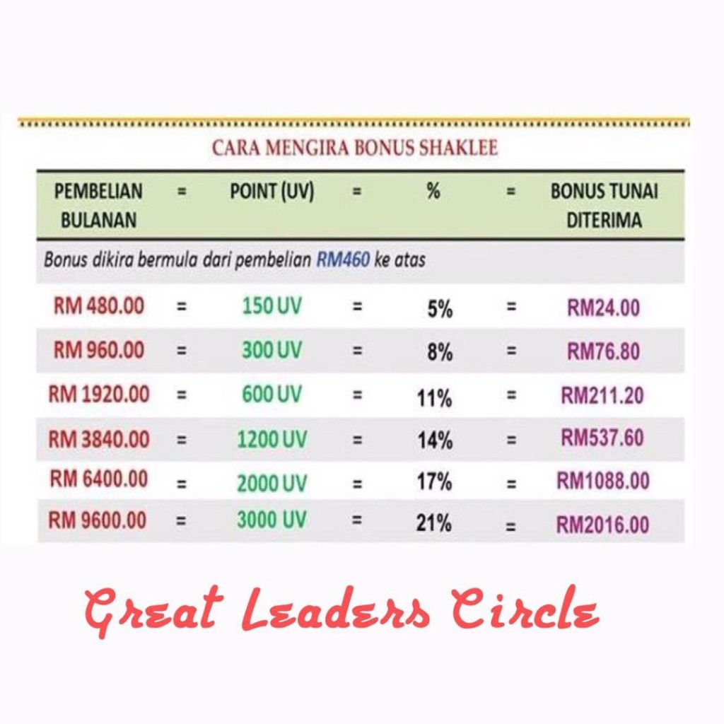 Ok, jom mami share jadual cash rebate yang kita akan dapat dengan Shaklee.