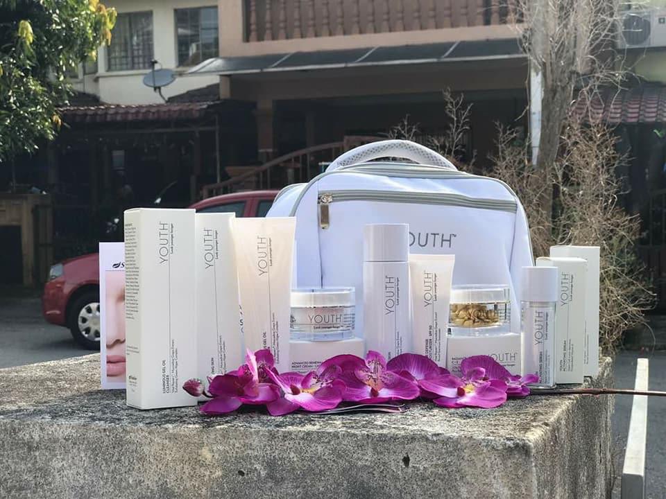 Mami ambil satu set Youth ini. Ada Cleanser, Toner, SPF, Night Cream, Serum dan Radiance. Ok dalam satu set tersebut ada satu 1 item yang dipanggil Radiance C+E.